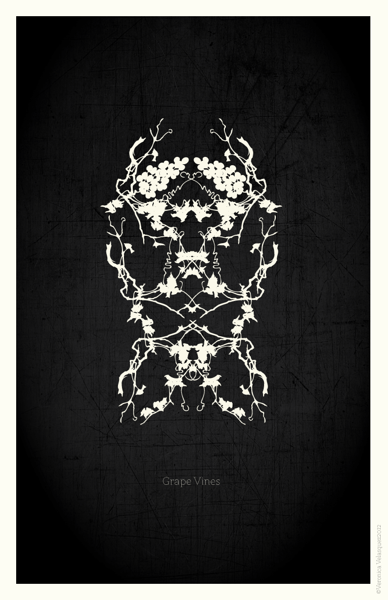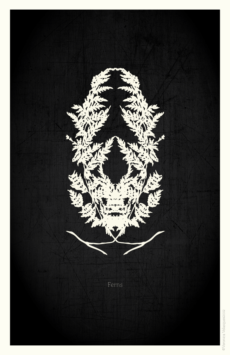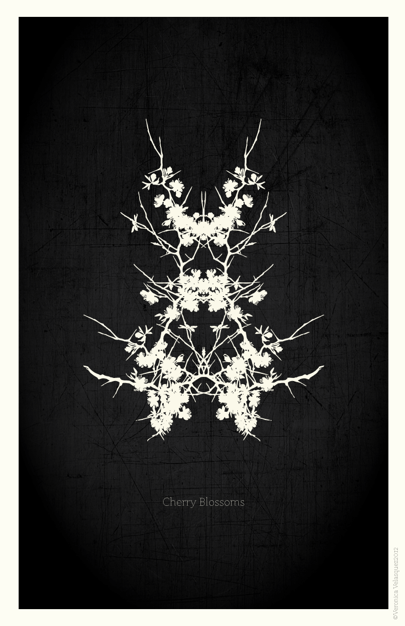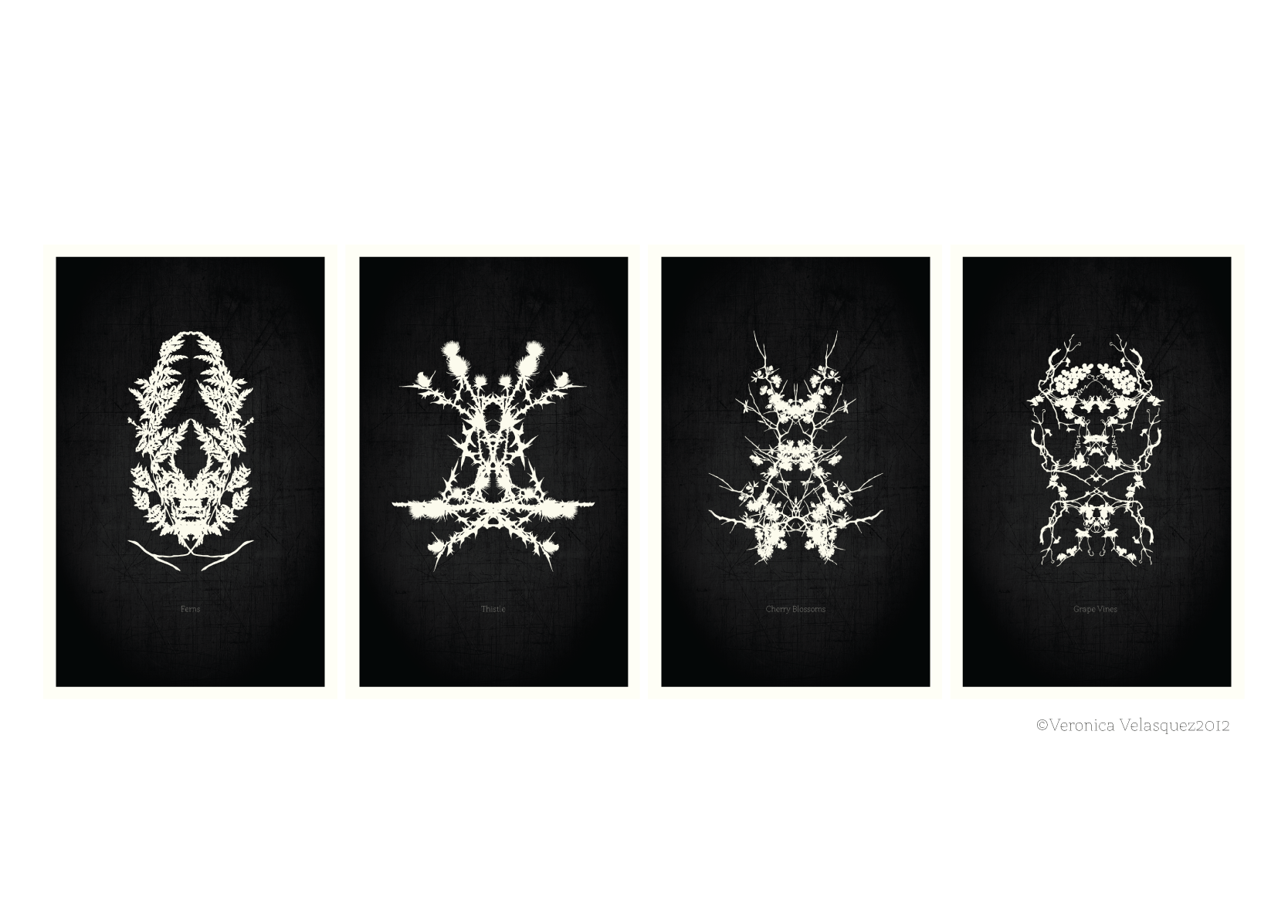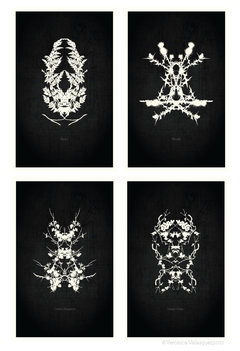 Series of four Rorschach-style flower posters